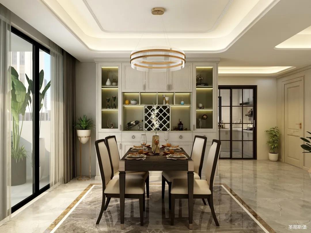 ▲餐厅定制了餐边柜,作为家庭生活浪漫的主要基地。菱形的小格子间满足了男主人收藏美酒的喜好,可视区域也逃不掉女主人收藏瓶瓶罐罐的艺术品。