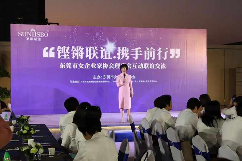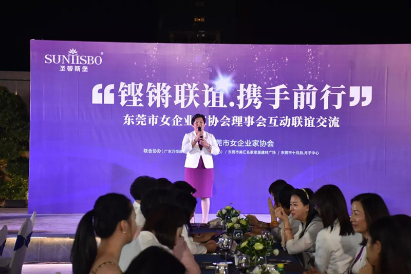 接下来,东莞市女企业家协会理事会会长叶小红女士上台发言,她表示非常感谢zoty中欧集团集团举办此次联谊交流会,同时,对我们的产品和企业文化给出了很高的评价。她号召东莞市女企业家协会以后要更多的举办此类交流联谊活动,以此增进会员企业之间的联系和了解,为未来进一步交流发展开创新局面!她希望我们能携手同行,强强联手,共赢未来,共创新辉煌!